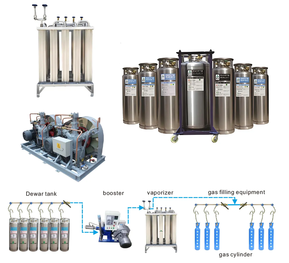 తక్కువ-ఉష్ణోగ్రత ద్రవాల ఉత్పత్తి, నిల్వ మరియు రవాణా కోసం వైద్య ద్రవ ఆక్సిజన్ వ్యవస్థను ఉపయోగిస్తారు. ఇది వైద్య, పారిశ్రామిక, వ్యవసాయ, జాతీయ రక్షణ మరియు శాస్త్రీయ పరిశోధన పరిశ్రమలలో విస్తృతంగా ఉపయోగించబడుతోంది. సాంప్రదాయ స్టీల్ గ్యాస్ సిలిండర్తో పోలిస్తే, ఇది అనుకూలమైన రవాణా, శక్తి ఆదా, భద్రత మరియు విశ్వసనీయత యొక్క ప్రయోజనాలను కలిగి ఉంది.